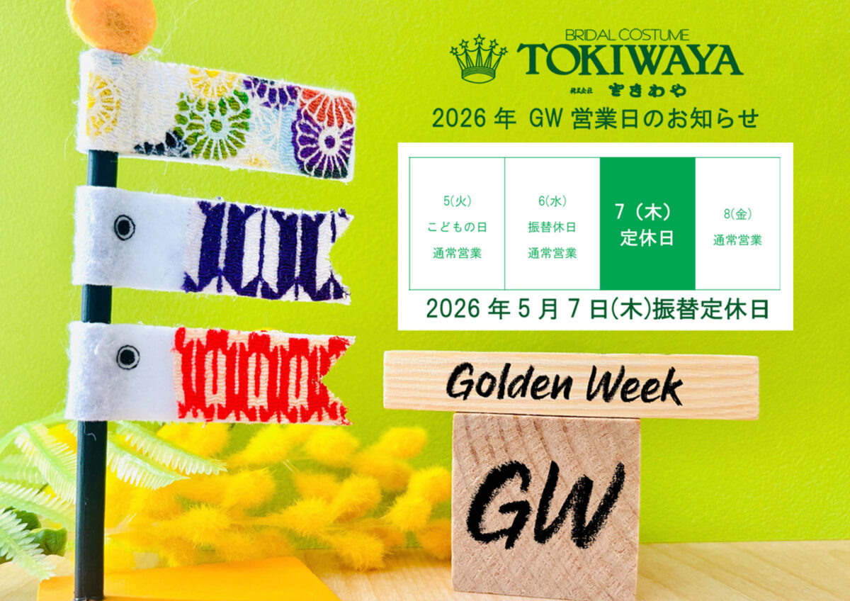 ときわやでは、ウェディングドレスや色打掛などの花嫁衣裳を広々とした開放感ある店舗にずらりとご用意し、